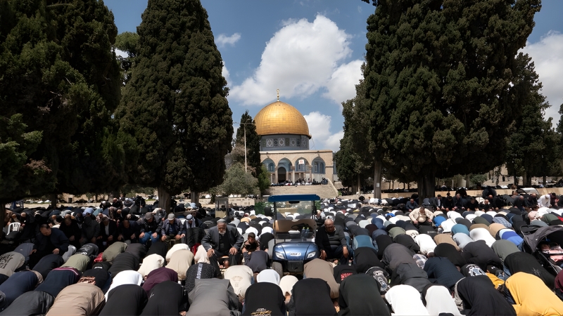 টানা পাঁচ সপ্তাহেরও বেশি সময় ধরে বন্ধ থাকার পর পবিত্র আল-আকসা মসজিদে শুক্রবার জুমার নামাজ আদায় করতে হাজার হাজার ফিলিস্তিনি মুসল্লি সমবেত হন।