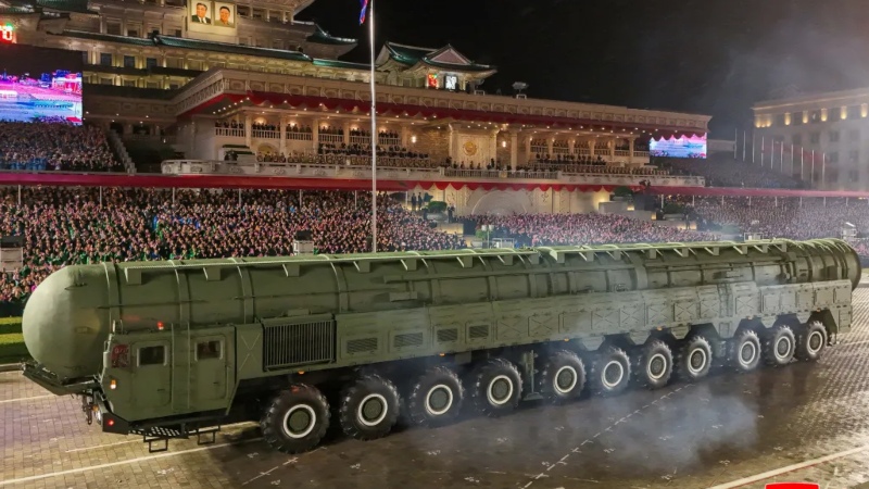 উত্তর কোরিয়ার সর্বশেষ আন্তমহাদেশীয় ব্যালিস্টিক ক্ষেপণাস্ত্র (আইসিবিএম) প্রদর্শন করে এক বিশাল সামরিক কুচকাওয়াজের নেতৃত্ব দিয়েছেন দেশটির নেতা কিম জং উন। শুক্রবার রাতে রাজধানী পিয়ংইয়ংয়ে অনুষ্ঠিত এই কুচকাওয়াজে বিভিন্ন দেশের নেতারাও উপস্থিত ছিলেন। উত্তর কোরিয়ার রাষ্ট্রীয় সংবাদমাধ্যম কেসিএনএ’র বরাত দিয়ে আল জাজিরা এক প্রতিবেদনে এ খবর জানিয়েছে।
