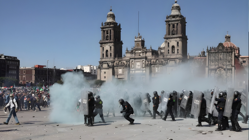 মেক্সিকোর দৈনিক এল ইউনিভার্সালের প্রতিবেদনে বলা হয়, বিক্ষোভকারীরা জাতীয় প্রাসাদের সীমানায় ঢুকে পড়লে নিরাপত্তা বাহিনী টিয়ার গ্যাস ছোড়ে এবং পাথর নিক্ষেপ করে। পত্রিকাটি আরও জানিয়েছে, পুলিশ কয়েক মিনিট ধরে জোকালো প্রাঙ্গণে বিক্ষোভকারীদের ধাওয়া–পাল্টা ধাওয়া করার পর এলাকা খালি করে দেয় এবং শেষ দলটিকেও ছত্রভঙ্গ করে।