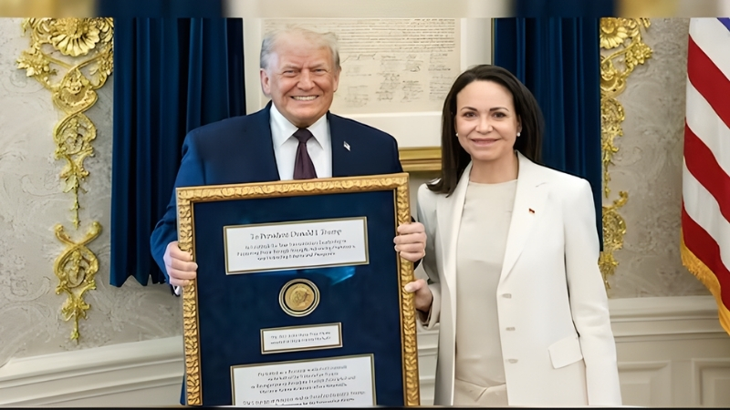 স্থানীয় সময় বৃহস্পতিবার (১৫ জানুয়ারি) হোয়াইট হাউসে বৈঠক শেষে সাংবাদিকদের সঙ্গে আলাপকালে মাচাদো জানান, তিনি ব্যক্তিগতভাবে ট্রাম্পের হাতে নোবেল শান্তি পুরস্কারের পদক তুলে দিয়েছেন। তবে এ বিষয়ে বিস্তারিত আর কিছু জানাননি তিনি। হোয়াইট হাউসও তাৎক্ষণিকভাবে নিশ্চিত করেনি, ট্রাম্প ওই পদক গ্রহণ করেছেন কি না।