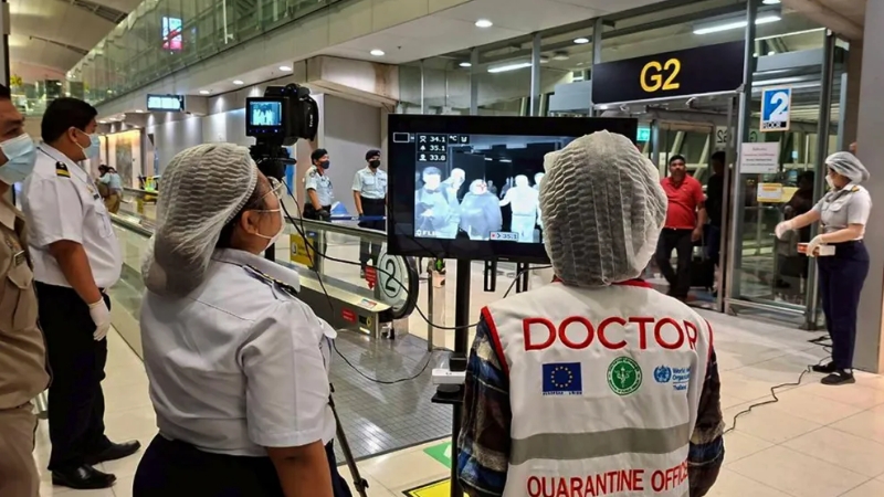 থাইল্যান্ডের সুবর্ণভূমি ও ডন মুয়াং বিমানবন্দরে স্বাস্থ্য পরীক্ষা জোরদার করা হয়েছে। যাত্রীদের জ্বর, শ্বাসকষ্ট ও অন্যান্য লক্ষণের জন্য পরীক্ষা করা হচ্ছে। যাত্রীদের বিশেষ ‘হেলথ অ্যাডভাইজরি কার্ড’ দেওয়া হচ্ছে। প্রয়োজনে যাত্রীদের কোয়ারেন্টিনেও রাখা হতে পারে।