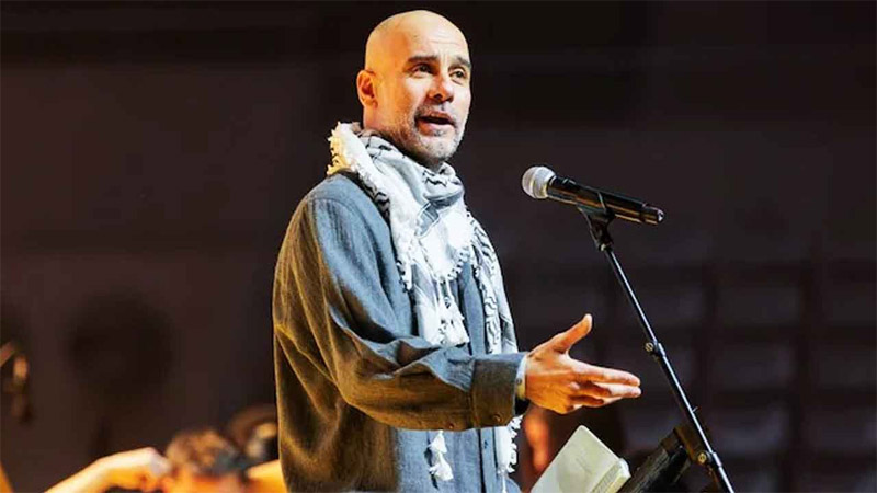 গতকাল রোববার অনুষ্ঠিত ওই অনুষ্ঠানে ফিলিস্তিনের ঐতিহ্যবাহী স্কার্ফ কেফিয়াহ পরে মঞ্চে ওঠেন গার্দিওলা। বক্তব্যের শুরুতেই সালাম জানিয়ে তিনি বলেন, রাজনৈতিক নেতৃত্বের নিষ্ক্রিয়তা গাজার মানবিক বিপর্যয়কে আরও গভীর করেছে। বিশ্বনেতাদের কড়া ভাষায় তিনি বলেন, তারা নিজেরা নিরাপদ ও আরামদায়ক পরিবেশে বসে নিরীহ মানুষের মৃত্যু নির্দেশ দিচ্ছেন।