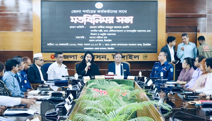 শুক্রবার (২৭ ফেব্রুয়ারি) বেলা সাড়ে ১১টায় টাঙ্গাইল জেলা প্রশাসকের কার্যালয়ে জেলা পর্যায়ের কর্মকর্তাদের সঙ্গে মতবিনিময় শেষে তিনি এসব কথা বলেন।