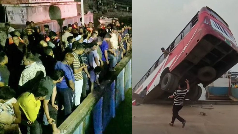 এদিকে বাসটি নদীতে পড়ে যাওয়ার বেশ কিছু ভিডিও সামাজিক যোগাযোগ মাধ্যমে ছড়িয়ে পড়েছে। সেখানে দেখা যাচ্ছে, চলন্ত বাসটি মুহূর্তের মধ্যে পন্টুন থেকে নদীতে পড়ে যায়। বাসটি পড়ার মুহূর্তে পন্টুন ও ফেরিতে থাকা লোকজন সেদিকে দৌড়ে যায়। বাসটি ডুবে যাওয়ার পর সেখান থেকে কয়েকজন ভেসে ওঠে। তখন পন্টুন ও ফেরিতে থাকা লোকজন তাদের দিকে রশি ও লাইফবয় ফেলে। তারা সেটি ধরে ওঠে আসে।