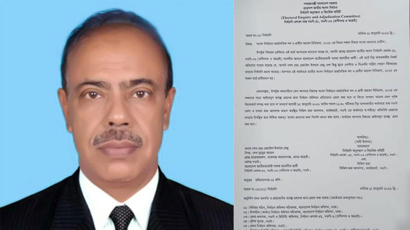 নোটিশে উল্লেখ করা হয়েছে, শেখ মো. রেজাউল ইসলাম রেজু নওগাঁ-৬ আসনে বিএনপির প্রার্থী। নির্বাচনি অনুসন্ধান কমিটির নিকট অভিযোগ দায়ের হয়েছে যে, বেশ কিছু স্থানে আপনার পোস্টার ও সিএনজি গাড়ির পিছনে স্টিকারের মাধ্যমে নির্বাচনি প্রচার করছে। আপনার এই কর্মকাণ্ড জাতীয় সংসদ নির্বাচনে রাজনৈতিক দল ও প্রার্থীর আচরণ বিধিমালা ২০২৫ এর লঙ্ঘন মর্মে প্রতীয়মান হয়।