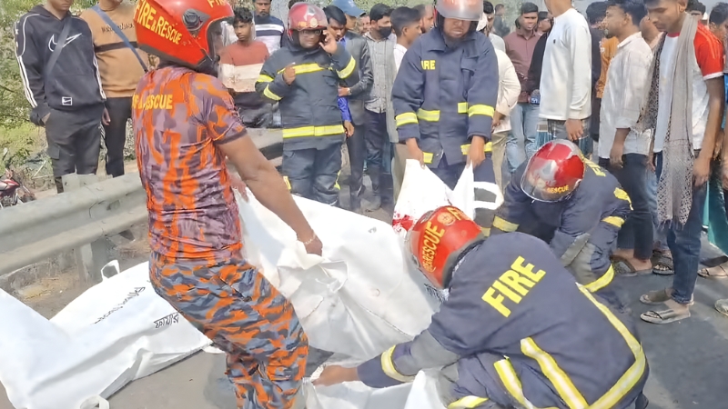 নিহতরা হলেন—রাজধানী ঢাকার মুগদা এলাকার বাসিন্দা আরিফ (৪০) ও ফরিদপুরের মামুন (৪২)। প্রত্যক্ষদর্শী ও ফায়ার সার্ভিস সূত্রে জানা যায়, ঢাকামুখী মোটরসাইকেলটি নিয়ন্ত্রণ হারিয়ে সড়ক দ্বীপের রেলিংয়ের সঙ্গে সজোরে ধাক্কা খায়। এতে দুর্ঘটনাস্থলেই মোটরসাইকেলের চালক ও আরোহী নিহত হন।