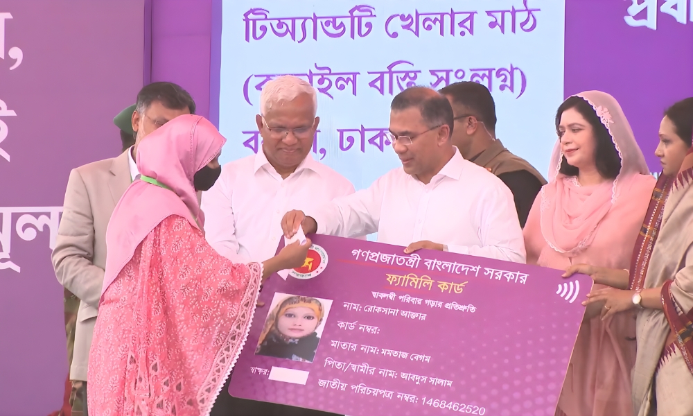 নারীপ্রধান পরিবারগুলোর জন্য বিশেষ ‘ফ্যামিলি কার্ড’ কর্মসূচির আনুষ্ঠানিক উদ্বোধন করেছেন প্রধানমন্ত্রী তারেক রহমান। মঙ্গলবার (১০ মার্চ) সকাল ১১টার দিকে রাজধানীর বনানীর টিঅ্যান্ডটি খেলার মাঠ (কড়াইল বস্তি সংলগ্ন) এলাকায় আয়োজিত অনুষ্ঠানে তিনি আনুষ্ঠানিকভাবে এই কর্মসূচির সূচনা করেন।