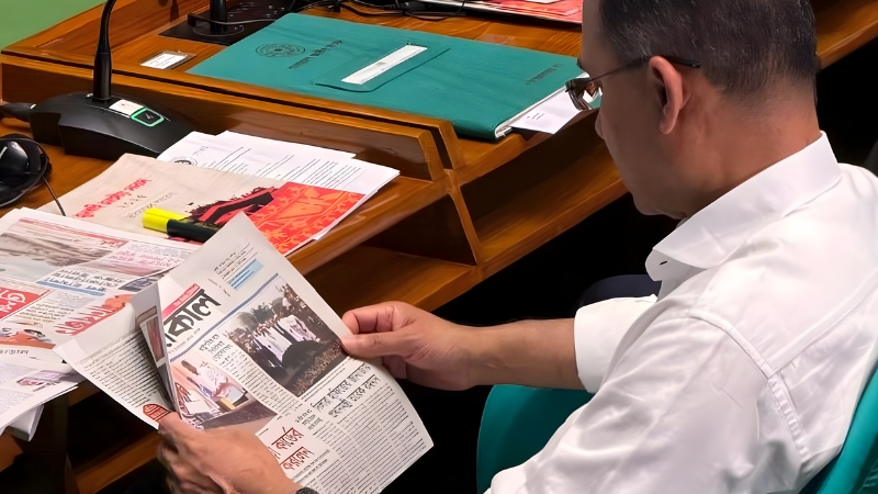 ছবিতে দেখা যায়, সংসদের কার্যক্রম চলমান থাকলেও প্রধানমন্ত্রী মনোযোগ দিয়ে পত্রিকার গুরুত্বপূর্ণ সংবাদগুলো পর্যালোচনা করছেন। সংশ্লিষ্টরা বলছেন, এটি কেবল একটি সাধারণ দৃশ্য নয়, বরং দেশের সার্বিক পরিস্থিতি সম্পর্কে আপডেট থাকার ক্ষেত্রে প্রধানমন্ত্রীর দায়িত্ববোধেরই প্রতিফলন।