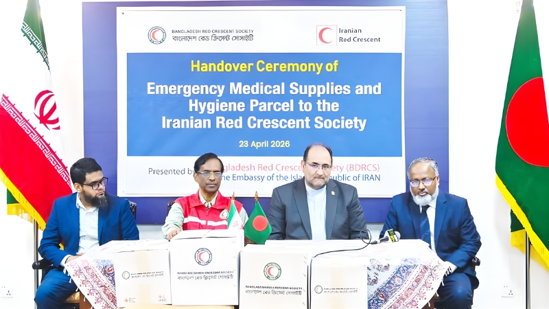যুদ্ধবিধ্বস্ত ইরানে জরুরি ওষুধ ও চিকিৎসাসামগ্রী পাঠাচ্ছে বাংলাদেশ। ইতোমধ্যে ঢাকায় ইরানের রাষ্ট্রদূত জলিল রাহিমি জাহানাবাদির কাছে এই সহায়তা সামগ্রী হস্তান্তর করা হয়েছে। বৃহস্পতিবার (২৩ এপ্রিল) পররাষ্ট্র মন্ত্রণালয়ের এক সংবাদ বিজ্ঞপ্তিতে এ কথা জানানো হয়।