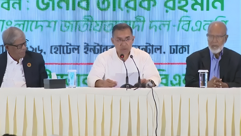 সংবাদ সম্মেলনে নিরাপদ, মানবিক ও গণতান্ত্রিক দেশ প্রতিষ্ঠায় ভিন্ন দল ও মতের সবার সহযোগিতা কামনা করে তারেক রহমান বলেন, ‘দেশে গণতান্ত্রিক জনগণের প্রতি আমার আহ্বান—আসুন, যেভাবে আমরা গণতন্ত্র প্রতিষ্ঠার লড়াইয়ে ভূমিকা রেখেছিলাম, একইভাবে এবার দুর্নীতি রোধ, আইনশৃঙ্খলা নিয়ন্ত্রণ এবং জনগণের প্রতি জবাবদিহিতার মাধ্যমে বাংলাদেশকে একটি নিরাপদ ও মানবিক দেশ হিসেবে প্রতিষ্ঠায় নিজ নিজ অবস্থান থেকে ভূমিকা রাখি। একটি নিরাপদ, মানবিক ও গণতান্ত্রিক বাংলাদেশ প্রতিষ্ঠার যাত্রাপথে আমি ভিন্ন দল কিংবা ভিন্নমতের সবার সহযোগিতা কামনা করছি।’