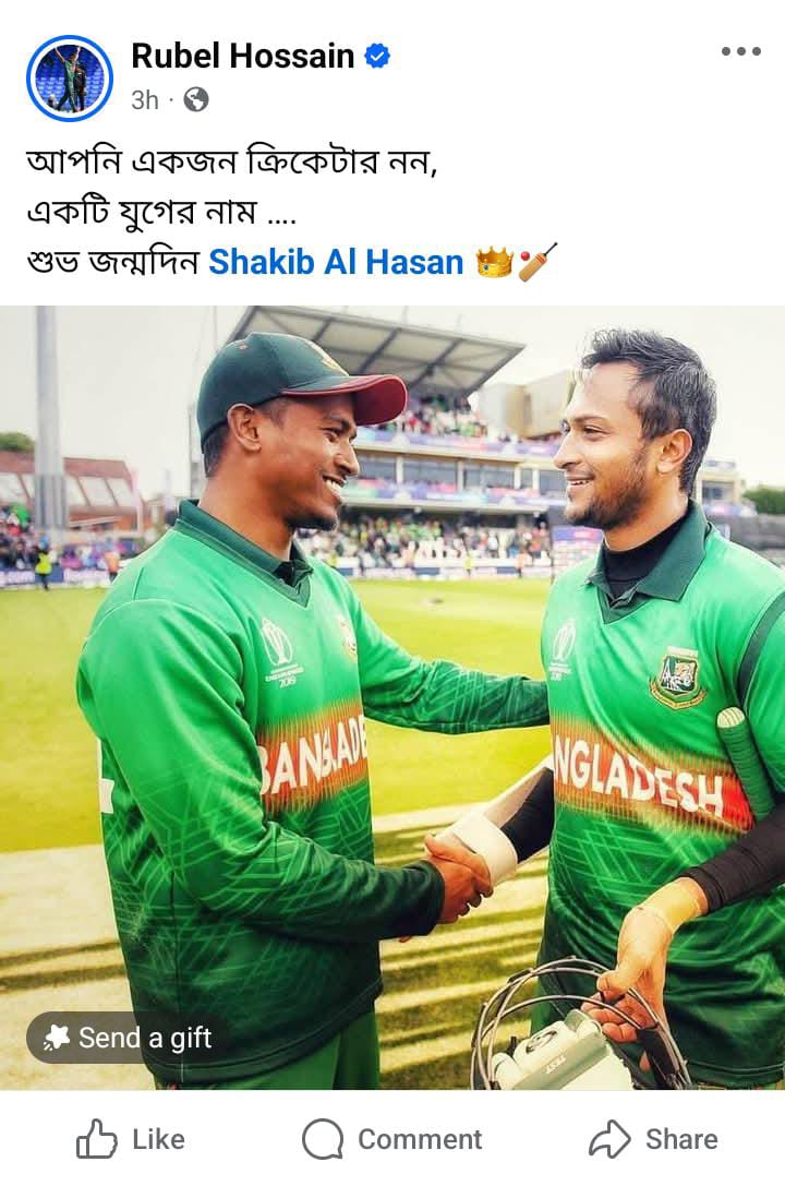 এদিকে রুবেল হোসেন তার জন্মদিনে লিখেছেন, ‘আপনি একজন ক্রিকেটার নন, একটি যুগের নাম। শুভ জন্মদিন সাকিব আল হাসান।’
